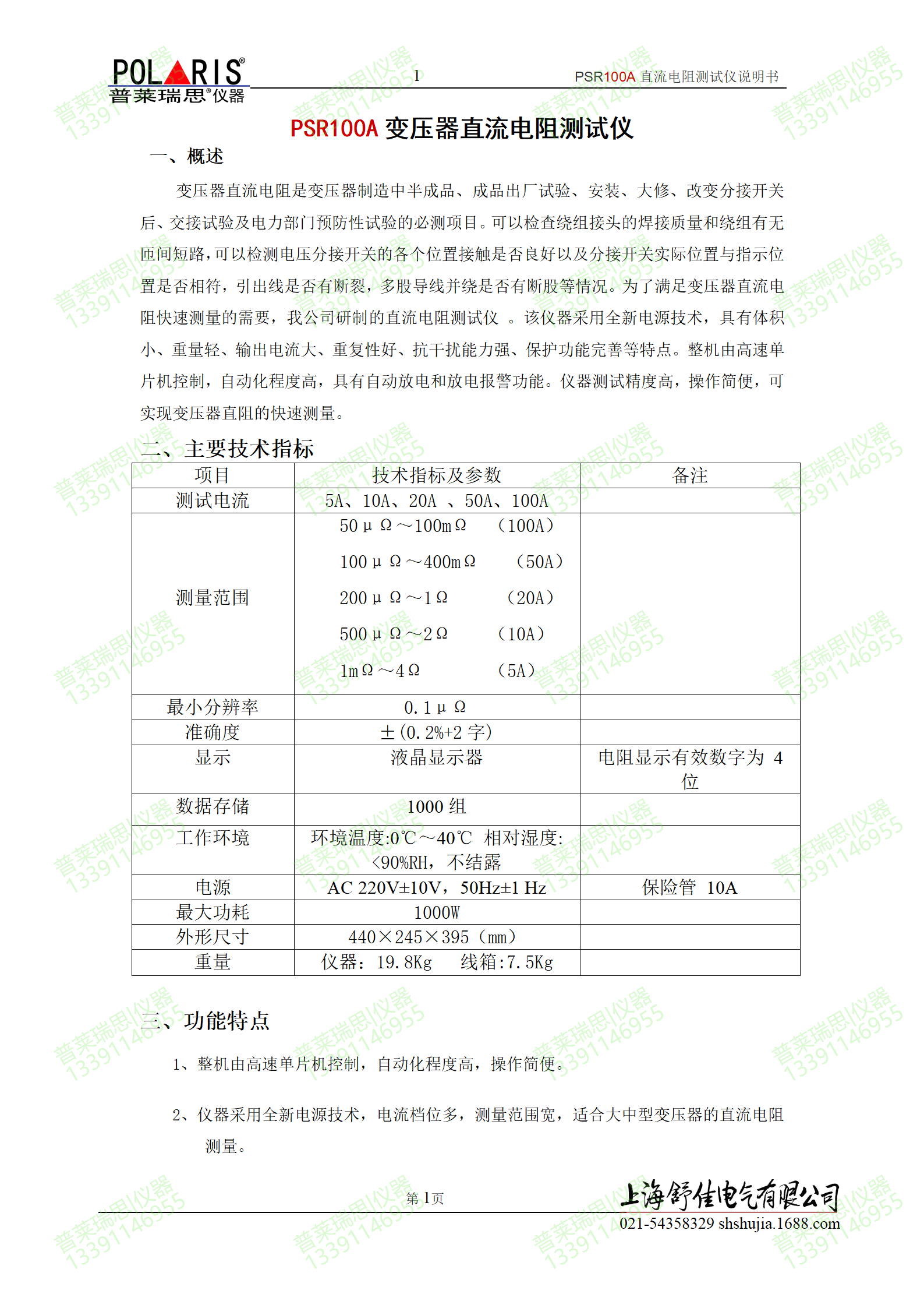 PSR100A感性负载直流电阻测试仪