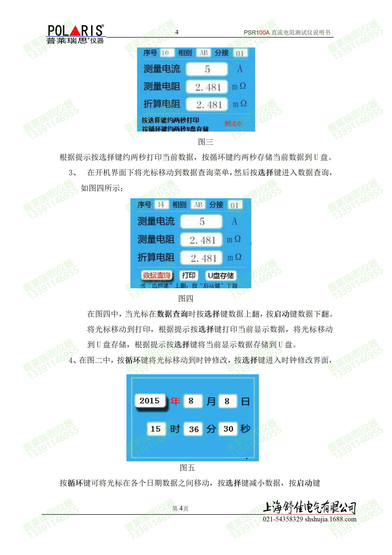 8、仪器自带万年历时钟和掉电存储,可存储1000组测试数据,可随时查阅