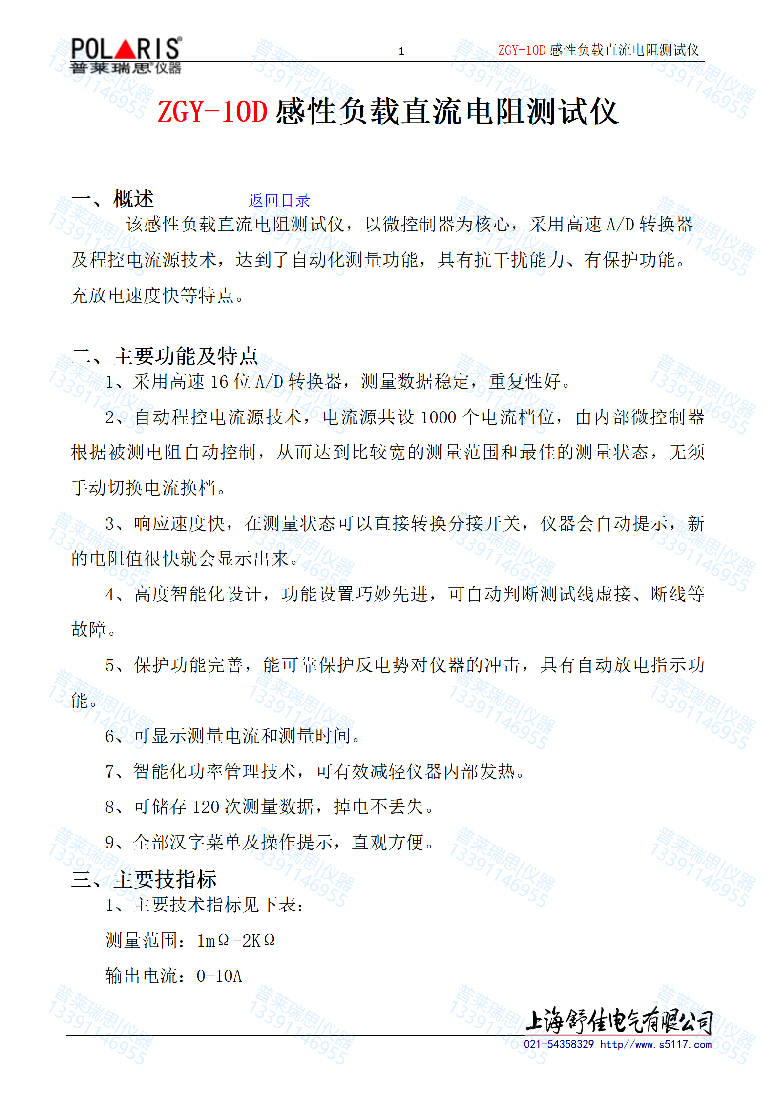 ZGY10AD感性负载直流电阻测试仪使用说明书