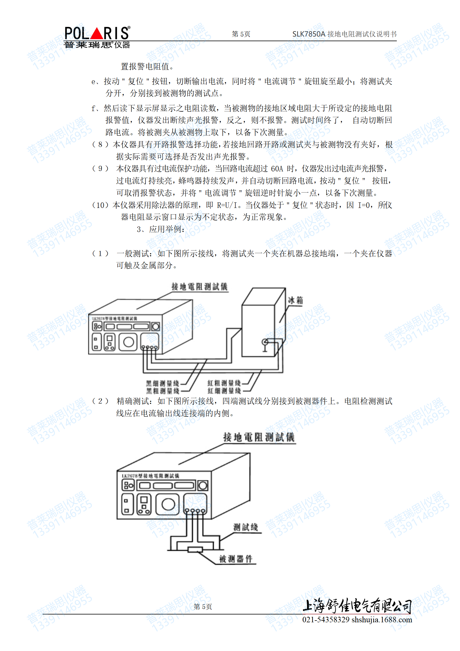6﹑报警电阻值: 0 ~ 200mΩ (AC 60A) 连续可调 精度:±5%