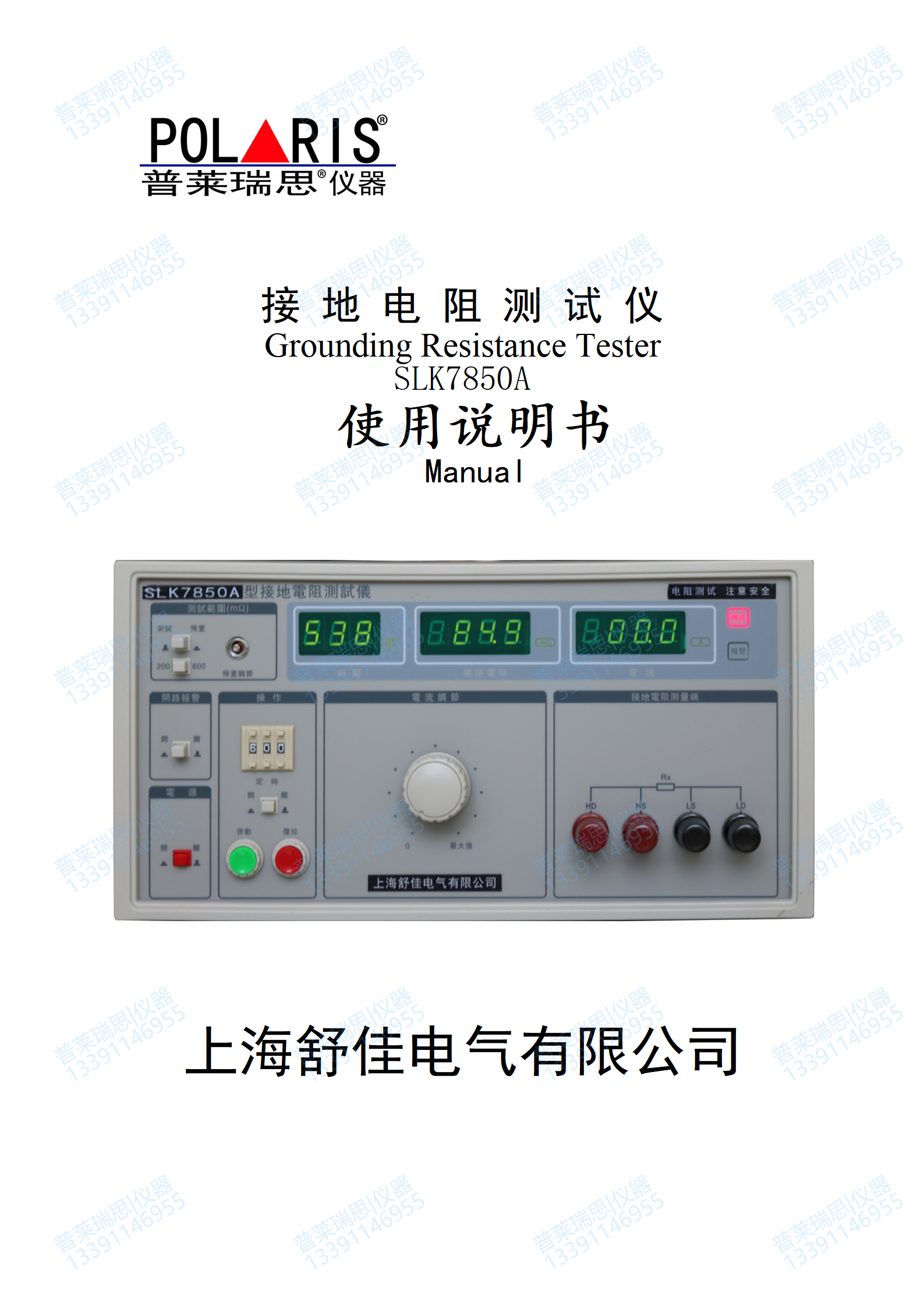 SLK7850A 系列接地电阻测试仪是按照 GB﹑IEC﹑ISO﹑BS﹑UL﹑JIS 等国际国内的安全标准而设计的,接地电阻的指标是衡量各种电气设备安全性能的重要指标之一。它是在大电流(25A 或 10A)的情况下对接地回路的电阻进行测量,同时也是对接地回路承受大电流指标的测试,以避免在绝缘性能下降(或损坏)时对人身的伤害。本测试仪是为满足以上要求为生产车间及实验部门提供高性能测试仪器而开发生产的。本仪器对供电电压要求不高,测量精度高,速度快,使用方便,特别适用于要求高的实验室和自动检测线上使用。断路报警选择功能(即开路报警)可以方便地知道仪器是否工作在正常测试状态,用户可以根据实际需要选择是否需要此项功能。本仪器采用三位半数字显示, 读数方便,采用优化设计,整机具有极高的可靠性和稳定性。