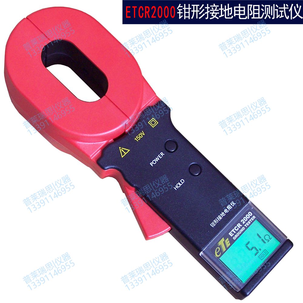 用ETCR2000只须将钳表的钳口钳绕被测接地线,即可从液晶屏上读出接地电阻值。