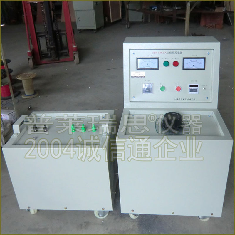 SBP-15KVA/600V型三倍频感应电压发生器装置可配套提供连同控制设备及机箱在内的成套产品。本发生器是电力系统、发电厂、变电站、供配电网络中对小容量电力变压器:串级式高压电压互感器进行倍频感应高压试验的基本设备之一。也可对各种低压电子、仪表电源变压器,电感线圈电器线圈进行倍频倍压试验,同时也可作为功率不大于1千瓦的倍频电源用于某些特殊电器设备的供电或测试。