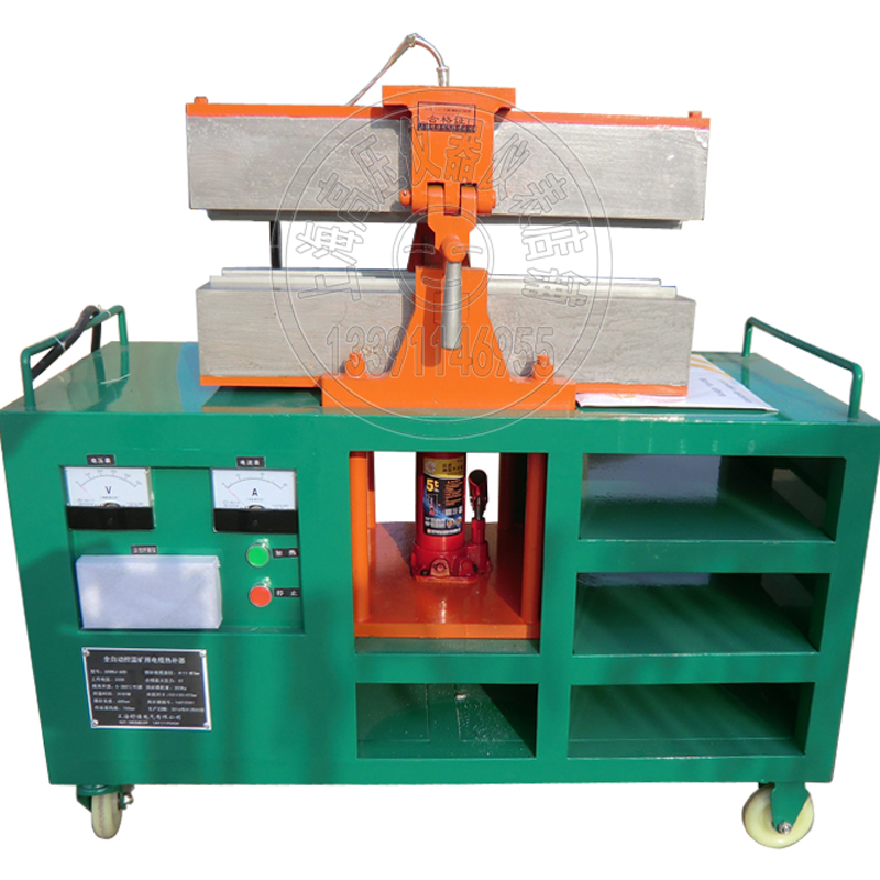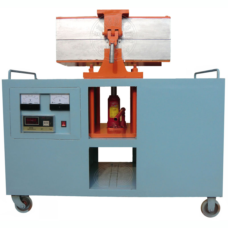 热补机主要有支架、电气系统、液压系统、仪表控制板组成。液压系统主要有液压缸、活塞、阀和压杆组成,完成模具升降加压,保证加热粘补过程所需的压力;支架是热补机的主体构件,由型钢焊接组成,并设有行走机构、工具箱和配重铁,形成完整的统一机台,在工作中移动方便,电气加热系统分别组装,统一控制,设有定温、定时、灯光、电铃报警装置,形成良好的调整控制性能。