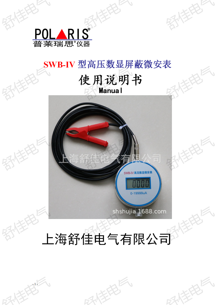 一.概述 SWB-IV数显屏蔽微安表是测量高压电器或绝缘材料等被试品的直流耐压和泄漏电流的直流电流表。主要为直流高压发生器和高压试验变压器的直流试验配套使用的仪表,是对直流高压泄漏