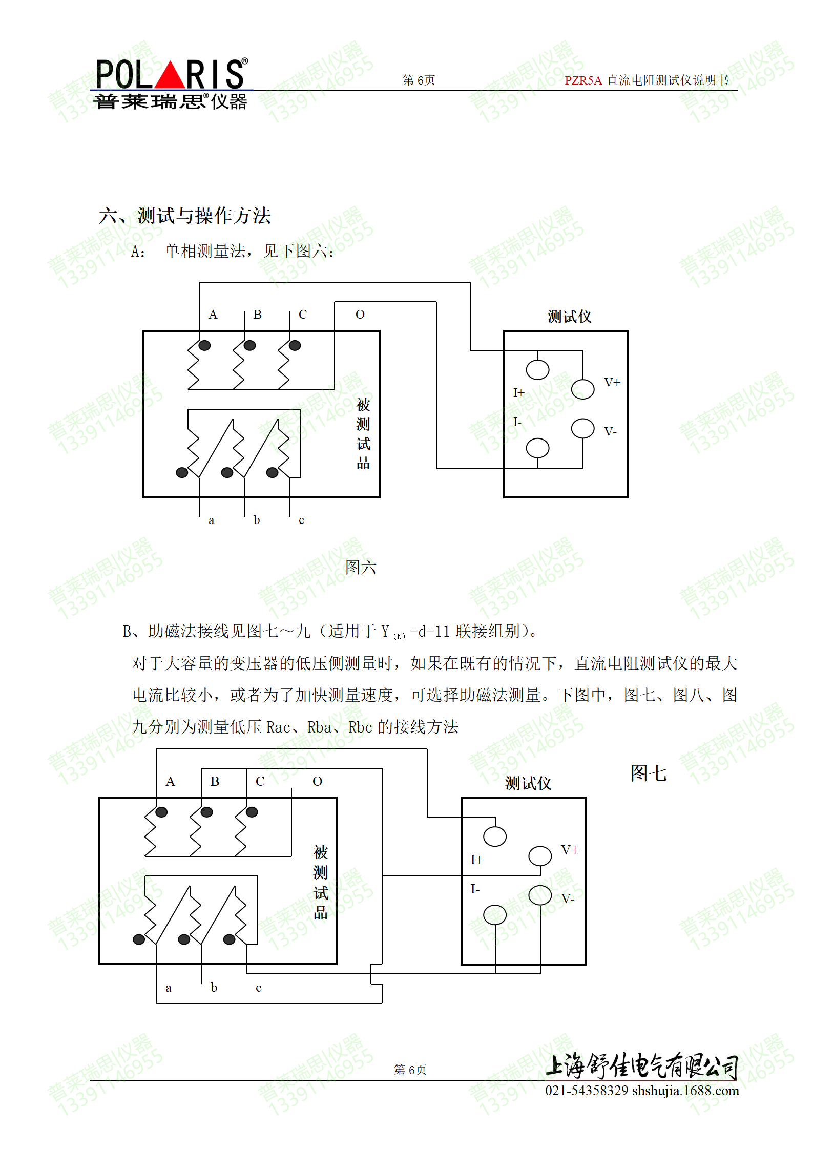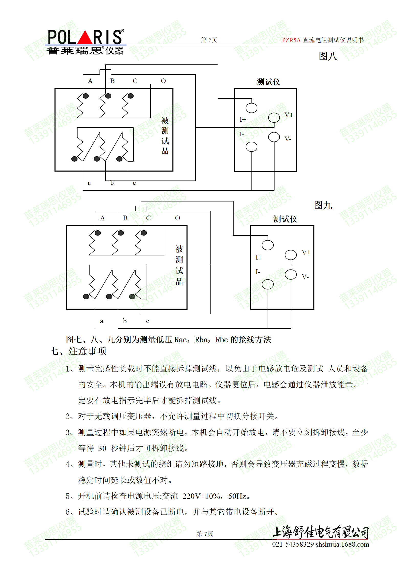 PZR5A直流电阻测试仪说明书变压器直流电阻是变压器制造中半成品、成品出厂试验、安装、大修、改变分接开关后、交接试验及电力部门预防性试验的必测项目。可以检查绕组接头的焊接质量和绕组有无匝间短路,可以检测电压分接开关的各个位置接触是否良好以及分接开关实际位置与指示位置是否相符,引出线是否有断裂,多股导线并绕是否有断股等情况。为了满足变压器直流电阻快速测量的需要,我公司研制了直流电阻测试仪。该仪器采用全新电源技术,具有体积小、重量轻、输出电流大、重复性好、抗干扰能力强、保护功能完善等特点。整机由高速单片机控制,自动化程度高,具有自动放电和放电报警功能。仪器测试精度高,操作简便,可实现变压器直阻的快速测量。